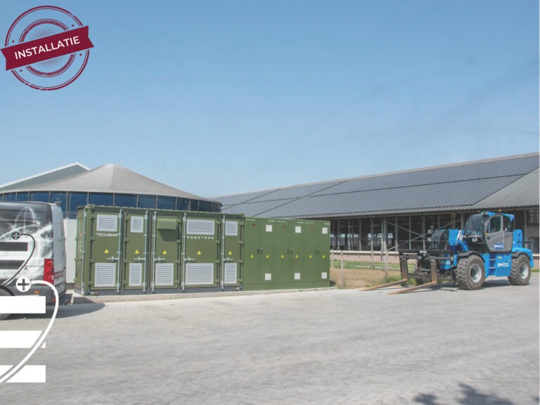 To respond to the energy markets, we installed a 1000 kW | 2007 kWh energy container for this customer in rural Sint-Truiden. This enables the customer to support the electricity grid and provides greater security for surrounding businesses.